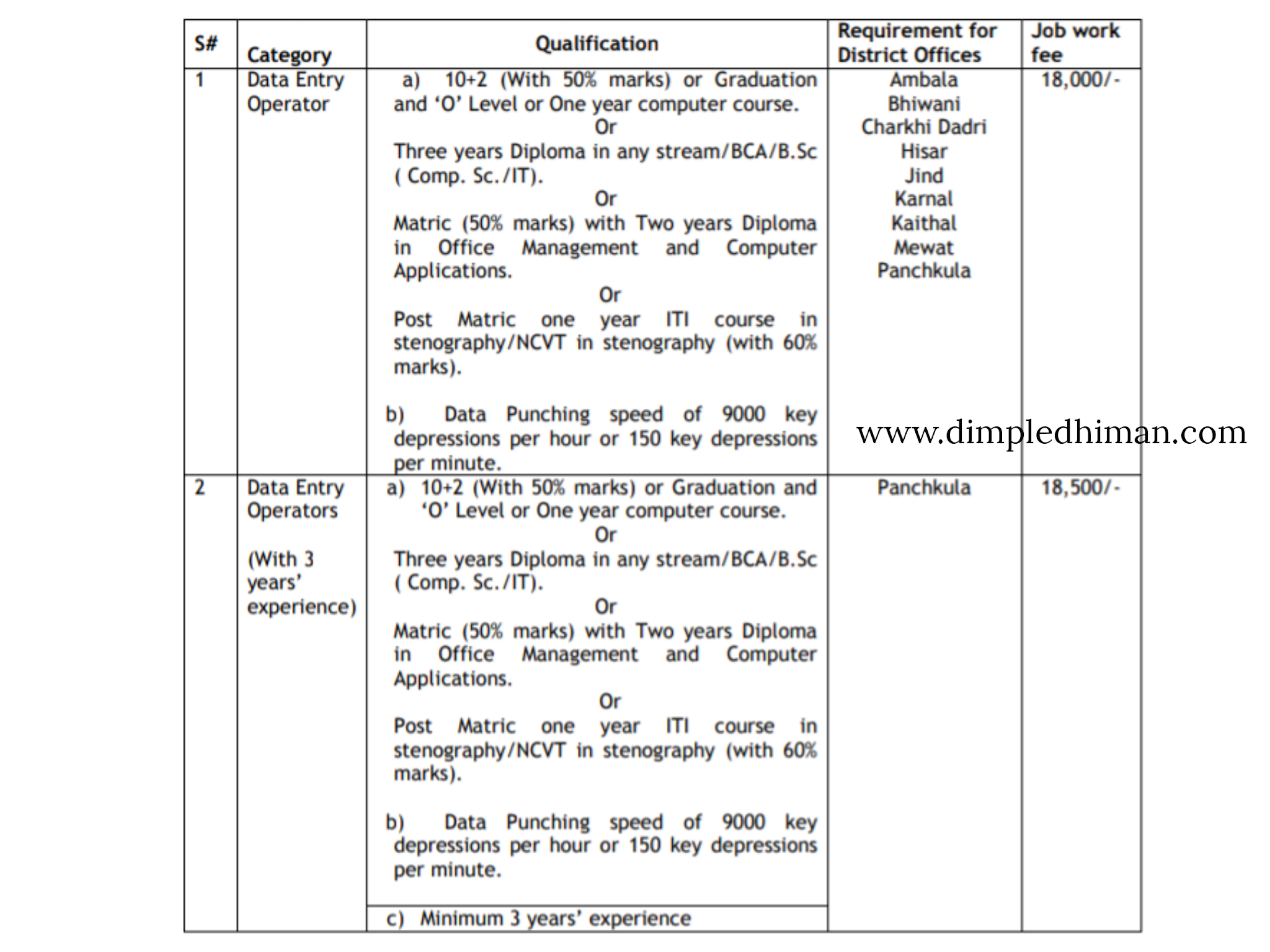 Govt Jobs 2021 :- हरियाणा में 12 पास के लिए डाटा एंट्री ऑपरेटर के पद पर वैकेंसी का नोटिफिकेशन जारी कर दिया है, जिसका विवरण नीचे दिया गया है अप्लाई लिंक के साथ. जिसे पढ़कर योग्य उम्मीदवार ऑनलाइन आवेदन कर सकते हैं. जिसकी सैलरी 18,000 -18,500 रुपए Monthly होगी.